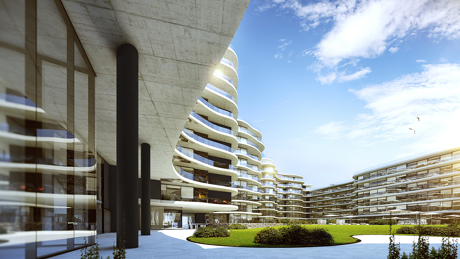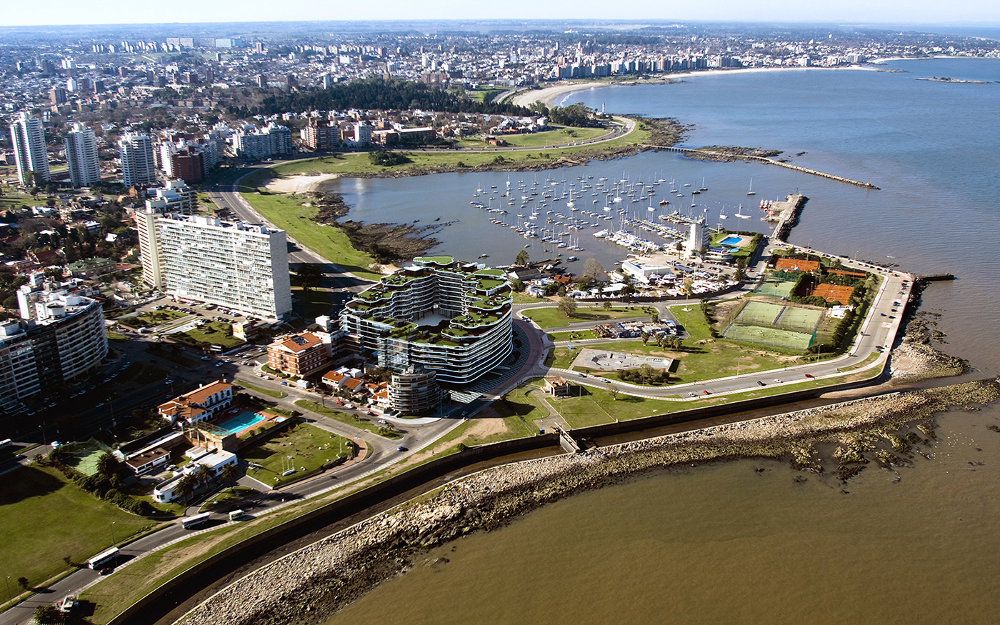 "Located indisputably on the best lot in Montevideo, Forum Puerto del Buceo is located on an 11,000 m2 property, on the first line of construction, with unique views of the promenade, the sea and the central gardens from all apartments. The formal proposal of the building appeals to a language of nautical and organic forms, with bows of sinuous and curved facades, with an architecture in the form of a cloister with a central park, surrounded by green spaces that are integrated into the recreational, commercial and tourist spaces of the entire area. "