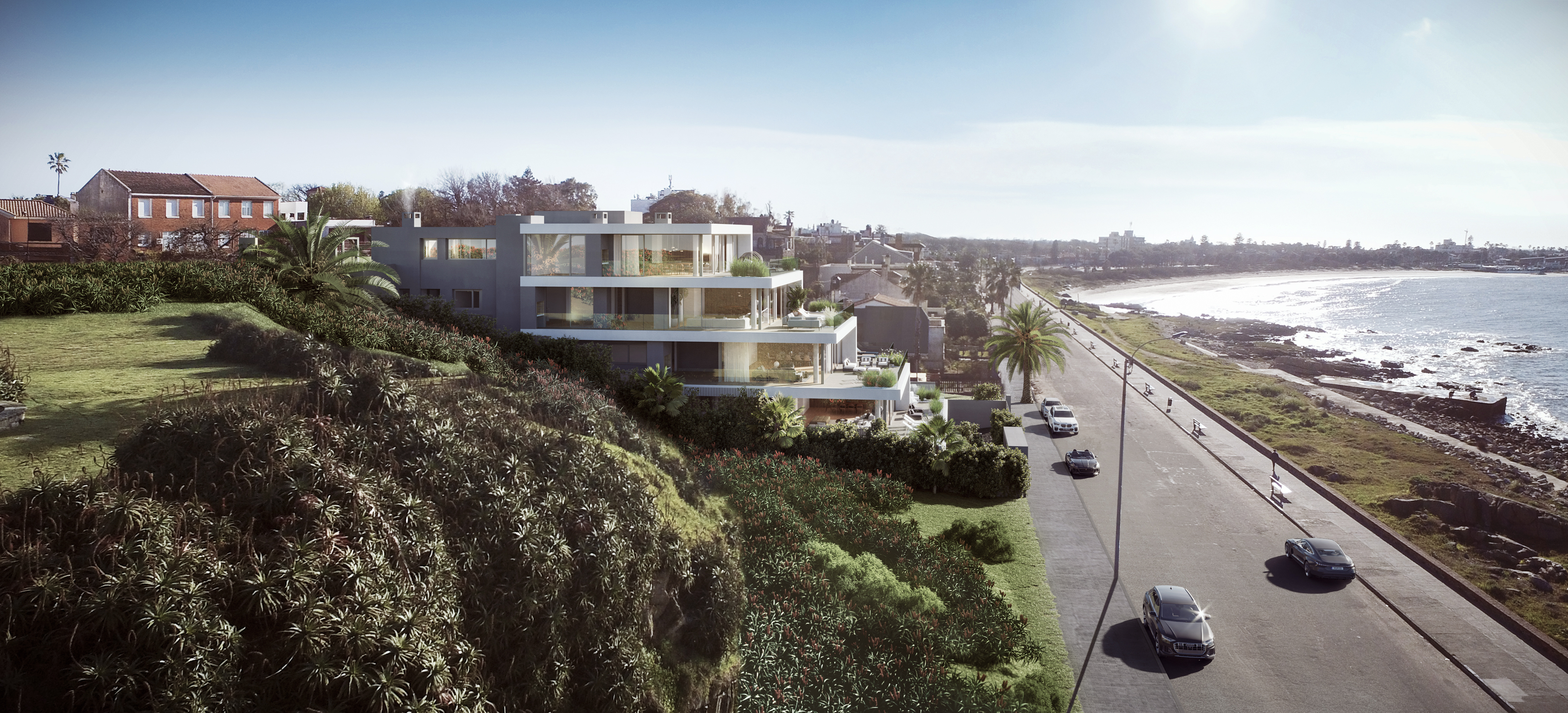 "In my perception of our coast, the location on the eastern slope of Punta Gorda has strong particularities that make it unique. It distances itself from urban noise by protecting itself from the traffic flow and takes refuge in a horizon of unlimited sea, which allows a panoramic view from east to west, without obstacles. Arq. Juan Diego Vecino"
