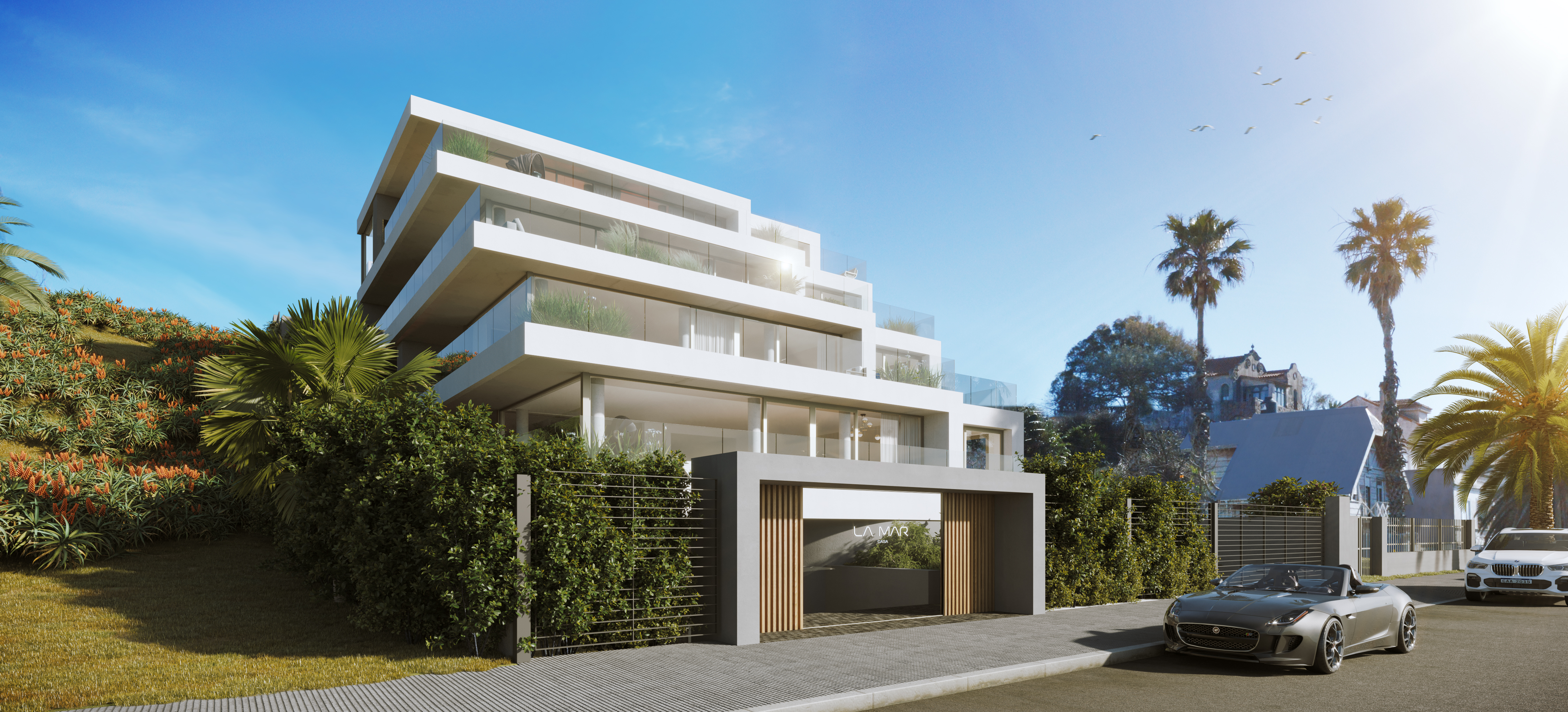 With subtle variations in dimensions and typologies, all 4 have high-rise spaces and gigantic terraces that extend over the sea and continue into the spectacular living rooms.